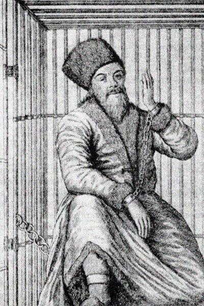 Пугачев, заключенный в клетку. 1774