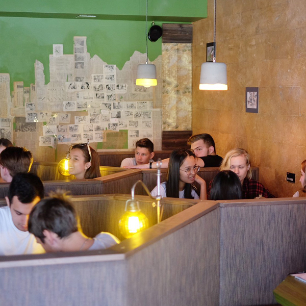 Мы же начали разрабатывать новый проект — хотелось уже работать максимально вбелую. Я тогда съездил на разведку в Сочи: Россия как раз выиграла право на проведение Олимпиады, и я думал о том, не открыть ли мне там чайную. Ехал на автобусе в Красную Поляну и придумал название «Чайная высота». В Сочи не открыл, зато поступило предложение от культурного центра «Покровские ворота». Взять зал, который сдавался в аренду под какие-то бизнес-тренинги: люминесцентные лампы, ламинат, кремовые стены, лепнина на потолке — и вход через книжный магазин. А сам центр посвящен диалогу между католической церковью и православной, между религиозной культурой и светской. Причем сам дом в XIX веке принадлежал чайному купцу Дмитрию Петровичу Боткину. Очень интересное предложение, но было совершенно непонятно, насколько реализуемое.