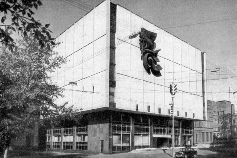 Прошло три десятилетия, включавших репрессии, войну, снова репрессии, период «малокартинья», когда за год советский зритель довольствовался девятью или пятнадцатью кинолентами, потом оттепель. В 1960-е годы советских фильмов выходило много, они собирали огромные залы по всей стране, их награждали премиями за границей и отпечаток руки Татьяны Самойловой уже появился на набережной Круазетт в Каннах. Союз кинематографистов сделался одним из самых влиятельных творческих союзов в стране — и самым богатым. Идея создать новый Дом кино возникла в последние годы правления Хрущева, реализовали ее уже при Брежневе. В 1967 году на углу Васильевской и Второй Брестской улиц возник облицованный светлым камнем параллелепипед. Коллективом архитекторов руководил Евгений Стамо, работавший в лаконичном стиле строгого советского модернизма (он, в частности, проектировал Кремлевский дворец съездов). Единственным украшением фасада стала надпись «Дом кино» и распластавшаяся над ней черная чугунная скульптура: птица с оливковой веткой в клюве взлетает над рулоном кинопленки, клубящимся, как волна (или как змея, по мнению некоторых).