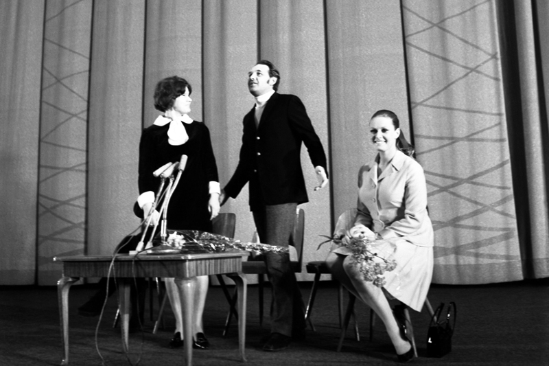 Кинорежиссер Анджей Вайда и актриса Беата Тышкевич на встрече со зрителями, 1970 г.