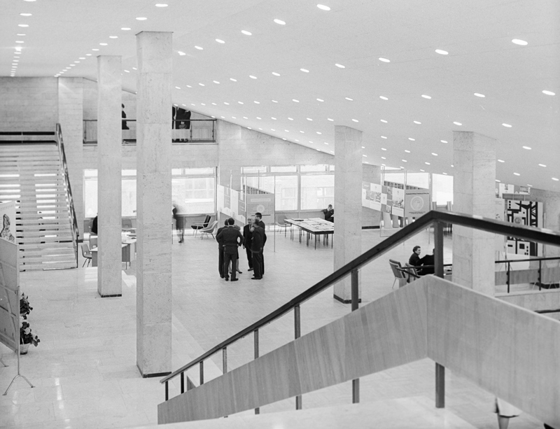 Фойе Дома кино, в отделке которого использованы коелга и травертин, 1968 г.