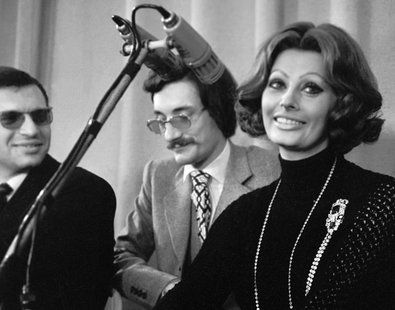 Софи Лорен во время пресс-конференции, посвященной кинофильму «Подсолнухи», 1970 г.