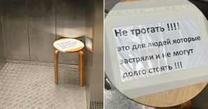 Жильцы новой многоэтажки на улице Бехтерева, которую в этом году ввели по программе реновации, обнаружили в лифте табурет для тех, кто там периодически застревает. На листе А4 в файлике настойчивая просьба не трогать стул: он предназначен исключительно для тех, кому сложно долго стоять в подобной неприятной ситуации.