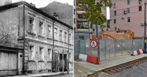 Экскурсанты растерянно смотрят на стройку, где стоит экскаватор. От здания, где, возможно, родился Грибоедов, осталось лишь полторы стены полуподвального помещения. На стройке надпись, что реконструкцию жилого дома ведет застройщик «Болеро-центр». Дом, который мог стать музеем и сохранить нашу историю для потомков, станет очередным элитным жильем в Хамовниках.