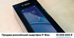 «“Р-Фон” — это не просто смартфон, это произведение искусства, созданное для тех, кто ценит эксклюзивность и уникальность… Вы станете одним из первых обладателей этого потрясающего смартфона. Вы сможете похвастаться им перед друзьями или коллегами. А можете просто положить его в банковскую ячейку и продать как первую нераспакованную модель на аукционе через 5–10 лет. Но для этого нужно оставить его в заводской пленке», — пишет автор объявления, указывая, что забрать телефон можно на Большой Дмитровке с наушниками и чехлом в подарок.