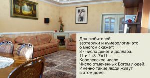 После рассказа об улице хозяин переходит к рассказу о квартире на 8-м этаже — самому главному в объявлении. Повествует о том, что магия чисел образует «королевское число» для сильных людей, а дом имеет ауру богатства и власти, заряжает энергетикой благосостояния.