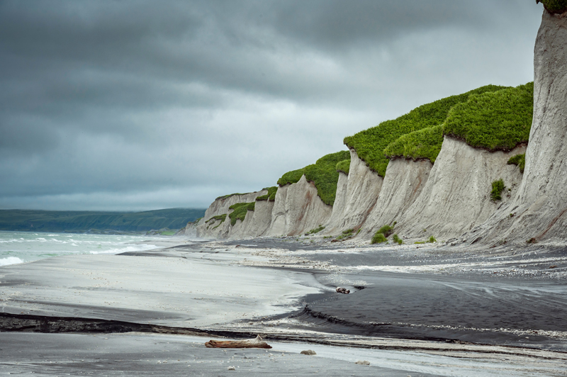 Охотское море по сравнению с Черным и Азовским — что боевой, покоривший все крыши кот по сравнению с затасканным детьми жирным домашним любимцем. Оно полно жизни, и это сразу чувствуется. Это по преимуществу что-то молчаливое, крупное, древнее, торжественно проплывающее в глубинах. О размерах этого кракена косвенно свидетельствуют стебли морских водорослей, выброшенных на берег. Они белые и широкие, как листы лазаньи.