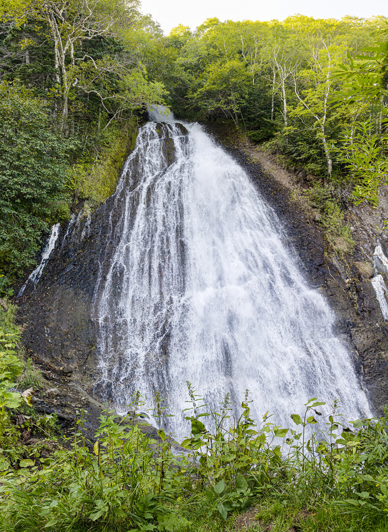 А полагаться на навигатор нужно с осторожностью. Попасть к некоторым природным достопримечательностям можно по принципу «едем два часа, а потом будет дырка в заборе». И это касается не только сопок, хребтов, перевалов и прочего экстрима, куда без инструктора и хорошей подготовки не рекомендуется ходить ни в коем случае. Вот, например, относительно безопасная природная красивость: 48-метровый Клоковский водопад. До него нужно ехать 193 километра от Южно-Сахалинска, после чего (это вполне официальное описание) встать на обочине, перейти дорогу, немного вернуться назад и свернуть к лесной тропе. Дальше уже начинаются стрелки-указатели, дорога круто забирает вверх, но, опираясь на протянутые вдоль маршрута перила-канаты, минут за пятнадцать до водопада можно добраться.