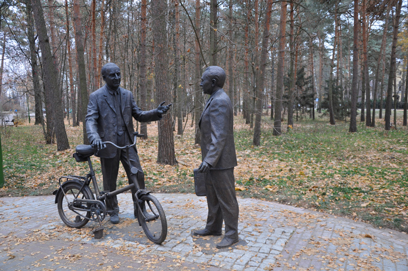 Чтобы гулять по Дубне, надо взять велосипед — он здесь культовый транспорт и культурный код. Дубна — город, где велосипед способ разговаривать с пространством. Все ученые и не только ездили и ездят на велосипедах. Человек в белом халате, катящий по лесной дорожке на старом советском «Аисте» — символ города. На стоянке у кафе по состоянию велосипеда мы узнаем, кто и сколько лет живет в городе. Хипстер, приехавший из Москвы с новеньким горным великом, или пожилой ученый-физик на старом потрепанном шоссейнике с приваренным багажником, мамочка на выгуле чуть ли не на трехколесном или житель-рыбак (дешевый велик, забрызганный грязью, с кривыми фарами) — в Дубне можно рассматривать типажей круглосуточно. Даже памятник известному итальянскому физику Бруно Понтекорво (биография которого напоминает шпионский фильм, про него Высоцкий пел: «Пусть не поймаешь нейтрино за бороду и не посадишь в пробирку, но было бы здорово, чтоб Понтекорво взял его крепче за шкирку!») и советскому физику Венедикту Джелепову (у которого не такая угарная биография) сделан с велосипедом, то есть это как бы памятник еще и ему.