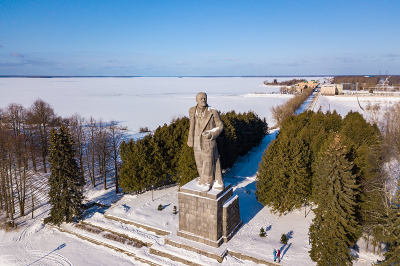 Разобраться во всем этом может только настоящий педант и любитель строгой классификации, а я решила просто прокатиться к памятнику Ленину, потому что там кругом вода и памятник самый огромный в нашей стране после волгоградского. Гигант — 37 метров с постаментом — входит в топ-3 по высоте памятников Ленину на планете. Стоит он на перекрестке гигантских рек-каналов, разрезает своей фигурой тучи, смотрит на необозримые просторы, уносящиеся за горизонт — в общем, эпичное зрелище, духоподъемное и вдохновляющее. Раньше напротив Ленина стоял еще и Сталин, но его снесли. Кстати, в Дубне снимали фильм «Волга-Волга» и сериал «Бригада».