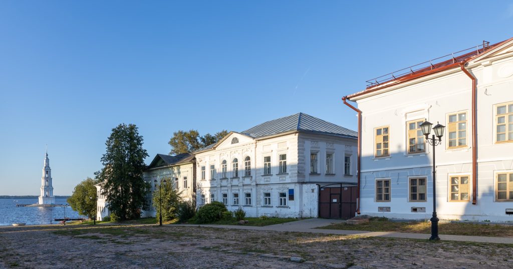 Символ Калязина — высоченная колокольня Никольского собора, которая немым укором торчит в самом центре Волги. Когда перед Великой Отечественной войной Николо-Жабенский женский монастырь взорвали и разобрали по кирпичикам, колокольня устояла (умели же предки строить) и полвека прослужила маяком для проплывающих судов. В конце 1980-х ее фундамент укрепили и даже насыпали вокруг небольшой остров, но местные еще помнят, как детьми на лодках проплывали под каменными арочными сводами. Хотя большую часть исторического центра, монастырский посад XV века и сами древние монастыри в 1939 году затопили, предварительно взорвав, здесь есть на что посмотреть. До революции Калязин был процветающим портовым городом, через который в Москву везли разнообразный товар. То, что подмокало по пути, местные торговцы скупали за бесценок, просушивали, приводили в первозданный вид и уже самостоятельно везли на продажу в Москву. На том и богатели. После революции купечество перестало играть значимую роль: кто-то уехал, кого-то репрессировали, но в целом город считался зажиточным, пока в 1930-е не был утвержден проект «Большая Волга». Для его реализации затопили не только поля, леса и деревни, но и довольно крупные города. Калязин ушел под воду Угличского водохранилища, Ставрополь-на-Волге — Куйбышевского, а старинная Молога покоится на дне Рыбинского моря. Впрочем, в отличие от Мологи, которая была полностью стерта с карты России, в Калязине часть исторических памятников все же сохранилась. Частично от варварского уничтожения удалось спасти уникальные фрески XVII века, покрывавшие стены собора Свято-Троицкого Макарьевского монастыря. Это личная заслуга уроженца Калязина, первого директора местного краеведческого музея Ивана Никольского. Первый раз древнюю обитель собирались взорвать сразу после революции, но Никольскому удалось отстоять монастырь и открыть в нем первый в городе музей. Когда стало понятно, что затопления Калязина не избежать, Иван Никольский (это было время самых кровавых сталинских репрессий) бесстрашно бросился спасать живописное религиозное наследие. Каким-то чудом ему удалось уговорить московских археологов и реставраторов и зимой 1939 года, когда температура по ночам опускалась ниже 40 градусов, организовать экстренную экспедицию по снятию фресок. Из двух тысяч квадратных метров росписей удалось сохранить чуть меньше двухсот. Сегодня часть живописных фрагментов хранится в Музее архитектуры им. Щусева в Москве, часть — в местном краеведческом. Сохранились в Калязине и каменные дома богатейших купеческих семей — Полежаевых, Охлобыстиных (предков актера и экс-священника Ивана Охлобыстина) и Рыжковых. Местные жители вспоминают, что в 1990-е советский премьер Николай Рыжков, внучатый племянник купчихи Марии Рыжковой, хотел выкупить и реконструировать фамильный дом, но здание ему не отдали. Кто знает, может, поселись здесь Рыжков, возрождение города началось бы на четверть века раньше. Пока большинство исторических особняков находится в плачевном состоянии, но есть план создания в центре города музейного кластера. До недавнего времени Калязин оставался в стороне от туристических маршрутов, в том числе из-за плохих дорог. Сейчас сделали трассу и с августа этого года запустили пассажирский теплоход «Метеор», который останавливается 