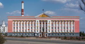 Улица Ленина, как и положено, упирается в большую площадь, носящую тут имя Красной, то есть «красивой», хотя с этим утверждением хочется поспорить. Ансамбль Красной площади состоит из здания местной администрации в помпезно-казарменном стиле сталинского ампира и заводской трубы на заднем плане, памятника Ленину, который указывает курянам и гостям города «светлый путь» неизвестно куда, и огромного храма — Знаменского кафедрального собора Богородицкого монастыря, на большей части территории которого еще недавно размещались заводские цеха.