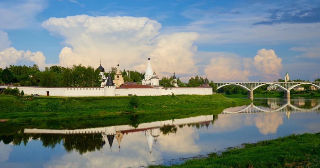 Нарядный монастырь за белокаменной стеной — главное украшение правого берега Волги — местные называют его Московская сторона. С тех пор как был основан Петербург, Старица стала важной пристанью на водном пути между двумя столицами. Кстати, левый берег называют Петербургской стороной: именно там расположены городские усадьбы XIX века, где Пушкин кружил местных барышень на балах. Вплоть до 1963 года моста между берегами не было, поэтому многие учреждения дублировались: например, в советские времена в городке было два роддома.