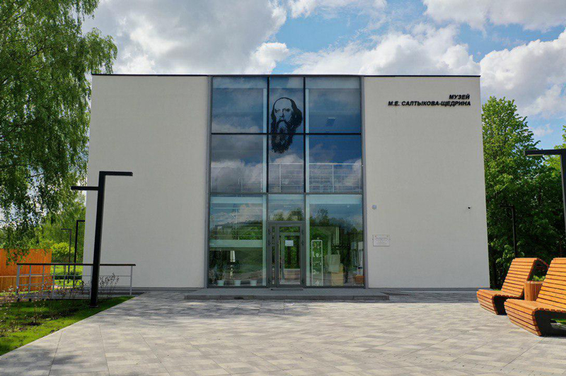 Современный музей Михаила Евграфовича Салтыкова-Щедрина ведет свою историю с 1986 года. Впервые экспозиция открылась в родовой церкви Спаса Преображения (она сохранилась с тех времен), где был крещен будущий писатель. Долгие годы музей собирал предметы, связанные с жизнью семьи Салтыковых, и в 2019-м переселился в новое современное здание, и это настоящее чудо. Надо отдать должное талдомской администрации — она добилась, чтобы на месте усадьбы не просто воссоздали старое имение, а переосмыслили пространство и сделали современный мемориально-литературный музей. Проект стал возможным благодаря премии «Прорыв года», полученной округом в 2017-м. В результате построили дом в стиле хайтек, среди сельских пейзажей он выглядит неожиданно и круто, Салтыков-Щедрин остался бы доволен.