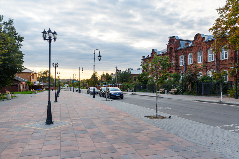 Это собственно центр города, там сгрудились магазины, симпатичные купеческие дома и пожарная каланча. А местный Арбат — это улица Салтыкова-Щедрина, который родился в 35 км от Талдома, в деревне Спас-Угол.