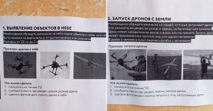 «Они могут быть похожи на вертолеты (с четырьмя пропеллерами) или самолеты. Размеры от 20 см до 3 м», — написано в листовке, на которой также напечатаны фотопримеры БПЛА в небе.