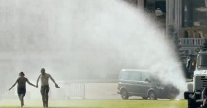 Москвичи бегают за поливальными машинами, чтобы охладиться