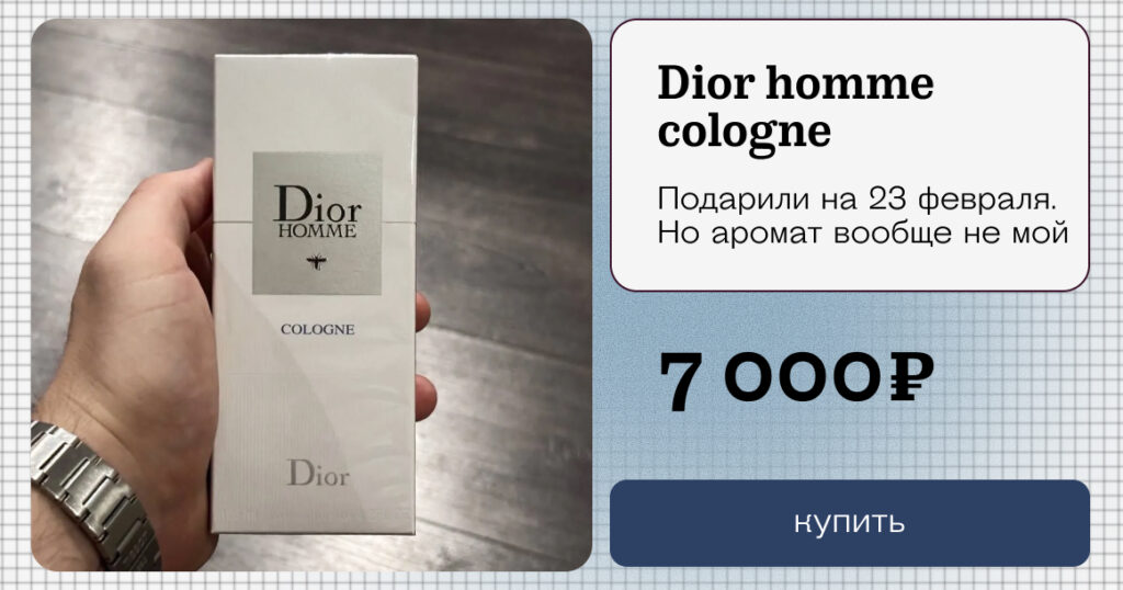 Сценарий повторяется из года в год, на этот раз лидирует парфюмерия. «Аромат не мой» — самый популярный здесь аргумент. Можно найти духи и за ценник как в магазинах, и даже за пару сотен рублей (видимо, продающие даже не удосужились проверить, за сколько можно сбыть неудавшуюся попытку угадать аромат по характеру).