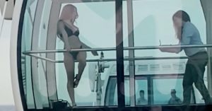 Девушка фотографировалась на высоте 140 метров в одном нижнем белье и на каблуках, принимая томные позы. Заодно порадовала пассажира-мужчину соседней кабинки, решившего снять на видео своеобразный бэкстейдж. Эксклюзивными кадрами он поделился с Mash.