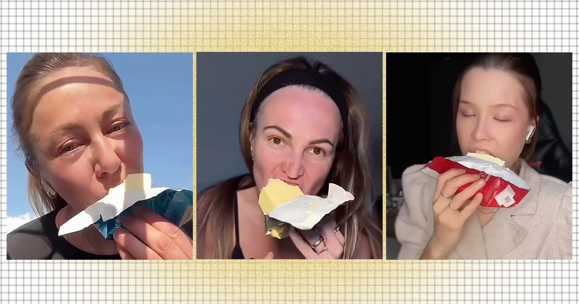 На волне популярности так называемой «диеты хищников», суть которой — полный отказ от растительной пищи в пользу исключительно животного жира и белка, москвички массово выкладывают видео, где с аппетитом откусывают куски сливочного масла.