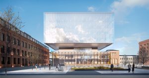 Об этом проекте мы писали еще в мае 2021 года, когда в интернете только появились рендеры нового бизнес-центра. Уже тогда проект вызвал дискуссию: насколько уместна такая «облачная» стекляшка напротив усадьбы? Некоторым жителям Хамовников казалось, что не очень уместна, а сотрудники музея прямо называли новое здание уродливым. И говорили, что из-за развернувшейся стройки на стенах и потолке музея образовались трещины.