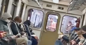 Показательно, что абсолютно никто из пассажиров на него не смотрит (ну, кроме того, кто снял это видео). Все сидят, уткнувшись в свои смартфоны. Что еще раз доказывает, что это происходит именно в Москве.