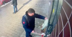 26 февраля мужчина пришел к офису и дернул дверь, но она оказалась заперта, тогда он просто вывалил отходы на землю. В марте дверь была открыта, поэтому мешок с мусором он поставил внутри перед выходом, после чего быстро скрылся.