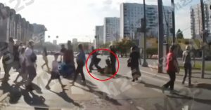 То, что случилось дальше, попало на видео, снятое на чей-то авторегистратор. Драка началась посреди проезжей части в тот момент, когда на светофоре загорелся зеленый и пешеходы начали переходить на другую сторону. Группа молодежи, с которой столкнулся курьер, также передвигалась на велосипедах и самокатах. Видно, что курьер попытался отъехать от этой компании, но ему перегородили путь — самый агрессивный самокатчик начал драку. Курьер пытался защищаться, но его резким ударом сшибли с ног и продолжили добивать лежачего. Прохожие вообще никак не реагировали на происходящее, вмешалась только сердобольная девушка, которая накричала на дерущихся, подняла курьера и его самокат и попыталась увести на безопасное расстояние. Однако начавший драку самокатчик еще раз попытался напасть на него со спины.