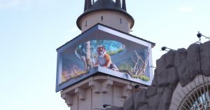 Он работает на базе 3D-технологии naked eye — изображение кажется объемным даже без использования специальных очков. Установили новый экран на башне у главного входа в зоопарк — раньше на ее фасаде красовались окна с витражами, однако теперь они оказались закрыты.