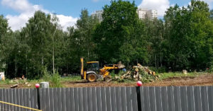 Этой борьба продолжается уже некоторое время — о противостоянии местных жителей с застройщиком мы писали подробно. Вырубки здесь происходят с января нынешнего года — люди сотнями выходили на улицу даже во время жесткого карантина, и до сих пор им удавалось останавливать работы. Здесь сформировалось мощное протестное движение — жители завели специальный сайт, посвященный борьбе за свое дело, вывешивали с балконов баннеры с призывом о помощи к Михаилу Мишустину.