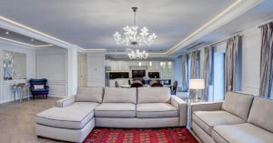 «Элегантная пятикомнатная квартира в клубном доме. Интерьеры выполнены в классическом стиле», — сообщается в объявлении на сайте агентства недвижимости Aurora Property. Площадь — 198 квадратов. Кухня в квартире включает обеденную зону и соединена с гостиной, спален в общей сложности три, есть кабинет, две гардеробные, две ванных комнаты, гостевой санузел и постирочная.