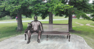 Иногда, знаете, любят горожане усомниться: «А почему памятник такому-то (кстати, кто это) стоит там-то? Никакой же связи!» Но в данном случае придраться не к чему. Ставят именно там, где надо.