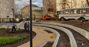 Похожая история происходит и здесь. За универмагом «Цветной» был пустырь, который хотели заполнить, конечно же, жильем. Но удивительно, что городские власти прислушались к местным жителям, которые попросили организовать тут сквер: оставить все уже растущие деревья на месте, посадить еще несколько фруктовых деревьев и декоративных кустарников, сделать тренировочную площадку и рампу для скейтбордистов. Все именно так и происходит. Сегодня депутат муниципального округа Тверской Кети Хараидзе опубликовала в своих соцсетях фото и видео ведущихся работ.