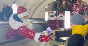 На эскалаторе на «Курской» замечен целый десант из Дедов Морозов с подарками