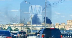 Очевидцы передают, что по близлежащим улицам распространяется едкий запах. Над зданиями виден густой черный дым.