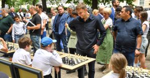 На открытии гроссмейстер Сергей Карякин сыграл одновременно несколько партий с бывшим министром культуры Владимиром Мединским и юными подопечными шахматных школ, расклад сил изначально был неравный, но игра была дружеская. В Москве постепенно возрождается традиция играть в самую популярную игру советских бульваров.