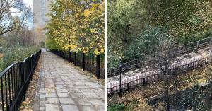 А вот на улице Халтуринской случилось нечто противоположное. Здесь появился целый сквер, в котором нельзя практически ничего: ни погулять с собакой по зеленому газону, ни походить по опавшей листве, ни, наконец, просто срезать к подъезду. Передвигаться можно только по мощенным плиткой дорожкам: шаг вправо, шаг влево просто невозможны, потому что по обеим сторонам дорожек установлены прочные и довольно высокие ограды. Фотографию опубликовал телеграм-канал «Московские новости». Детская площадка тоже забрана забором, правда, временным, что сути дела не меняет. Местные жители называют эту территорию сквером строгого режима и шутят, мол, хорошо, что пока не натянули проволоку. Никаких студентов, никаких ссор, никаких проблем. Кроме одной — еще в прошлом году вышло распоряжение Сергея Собянина о том, что загородки должны исчезнуть везде, кроме тех мест, где они отделяют проезжую часть или установлены для безопасности.