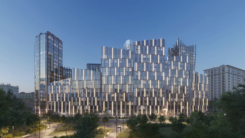 Теперь стало известно, как может выглядеть будущий комплекс. Появились первые визуализации, на которых видно разновысотные корпуса сложной ломаной формы, с углами и гранями — кажется, чтобы их построить, нужно определенное мастерство. В состав проекта из восьми корпусов включены и малоэтажные здания. Над концепцией работало бюро Gafa.
