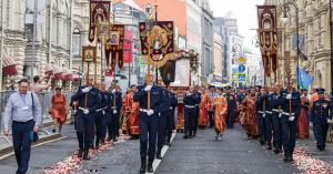 Накануне сообщали о перекрытии улиц в центре Москвы — в районе Ильинки, Варварки, Новой площади. Многие не знали причины. Так вот все из-за празднования Ильина дня.