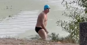 Мужчина, отправившийся в заплыв по октябрьской Москве-реке в шапочке и плавательных очках, попал на видео в районе Коломенской набережной. О том, сколько продолжался заплыв и вернулся ли гражданин на исходную позицию, неизвестно.