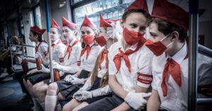 Сегодня пассажиры московского метро, едущие по Кольцевой линии, были несколько удивлены: по вагонам поездов прошло шествие пионеров.