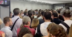 На «Комсомольской» столпотворение из-за неработающих турникетов