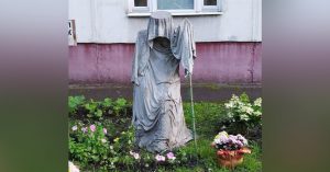 Одна из комментаторов, местная, она живет в доме, который виден на фотографии, пояснила: «Это жители соригинальничали. Но дети пугались, и фигуру убрали. А делается она очень просто: ведро, палка, тряпка. Заливаете все цементом. Можете у себя на участке такую сделать», — написала она в комментариях телеграм-канала «Новости Москвы».