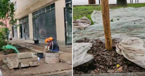 На Лесной улице уже неделю продолжаются незаконные работы: строители срывают газон и портят деревья у дома 10-16