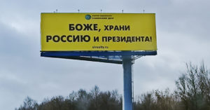 На магистралях Москвы появились плакаты «Боже, храни Россию и президента!»
