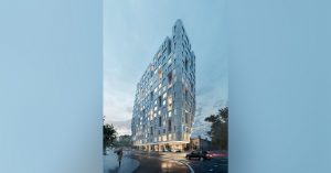 Но теперь на пересечении с Расторгуевским переулком, прямо рядом с усадьбой Щукина, в которой расположен Биологический музей им. Тимирязева, появится совсем уж необычное здание. Государственная историко-культурная экспертиза разрешила строительство 15-этажного жилого дома с очень запоминающейся архитектурой — мало того, что от узкого основания оно постепенно асимметрично расширяется, так еще и рельефный фасад с множеством вырезов создает легкое ощущение беспорядочности. Все эти архитектурные решения придают дому сходство с окаменевшим кораллом.