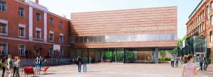Но не только поэтому. Если основной корпус вместе с бывшим зданием МГТС на Милютинском, 5, образовывали краснокирпичный готический ансамбль, то новое здание будет вторжением модернизма в этот французский квартал. Его построят по заветам классика Ле Корбюзье, велевшего поднимать здания над землей. Корпус поставят на опоры, а образовавшийся первый этаж перекроют стеклянными стенами. Все это затевается, главным образом, ради спортивных залов — они расположатся на втором и третьем этажах нового корпуса.