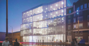 Новый торговый центр будет стеклянным, да не совсем: некоторые панели украсят керамической печатью. Галереи с магазинами и бутиками, которые займут все пять этажей, будут объединены центральным атриумом. На верхнем этаже расположится ресторан на 92 посадочных места (подробности позже). Парковка тоже будет, подземная.