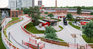 «На территории расположены исторические здания культурного наследия и железнодорожные составы разных эпох, которые нужно сберечь», — пишут на странице с презентацией проекта. Если посмотреть на рендер, где изображен вид сверху, можно заметить, что большинство исторических зданий (в том числе старинное веерное депо) планируют сохранить, но часть построек все-таки снесут. Башни с офисами, апартаментами и жильем, согласно концепции, появятся в западной части промзоны.