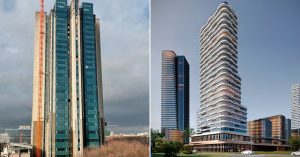 Речь идет об известном московском долгострое на Вернадке недалеко от метро «Университет». Его пытались построить порядка 40 лет. Административный комплекс на проспекте Вернадского должен был стать частью ансамбля из трех модернистских зданий авторства архитектора Евгения Розанова, строительство которых началось еще в 1980-х годах. Завершено было только два из них, а третье так и не довели до конца.